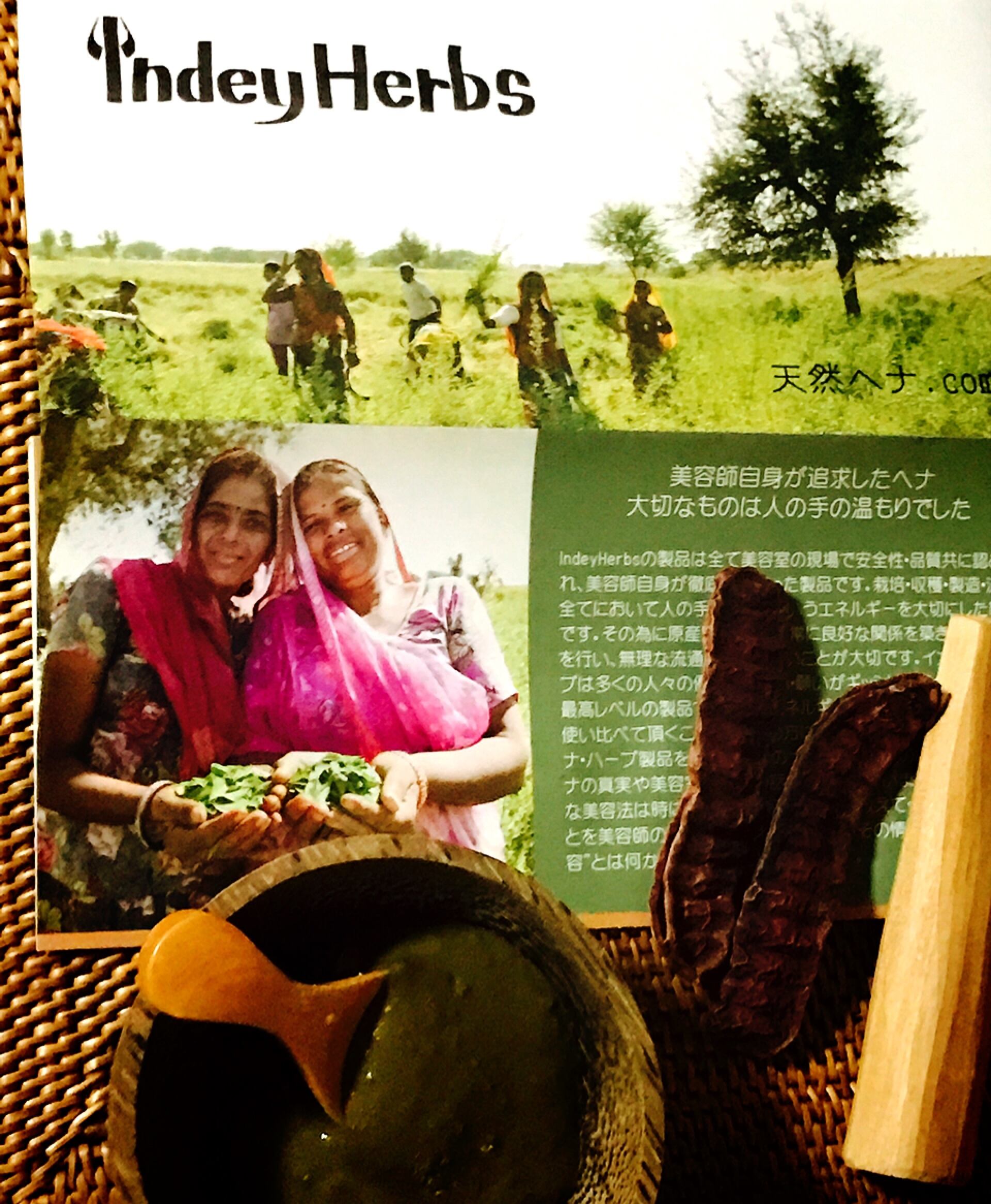 ヘナは、自然由来の植物成分で、髪にやさしく、艶やかさを与えてくれます。
