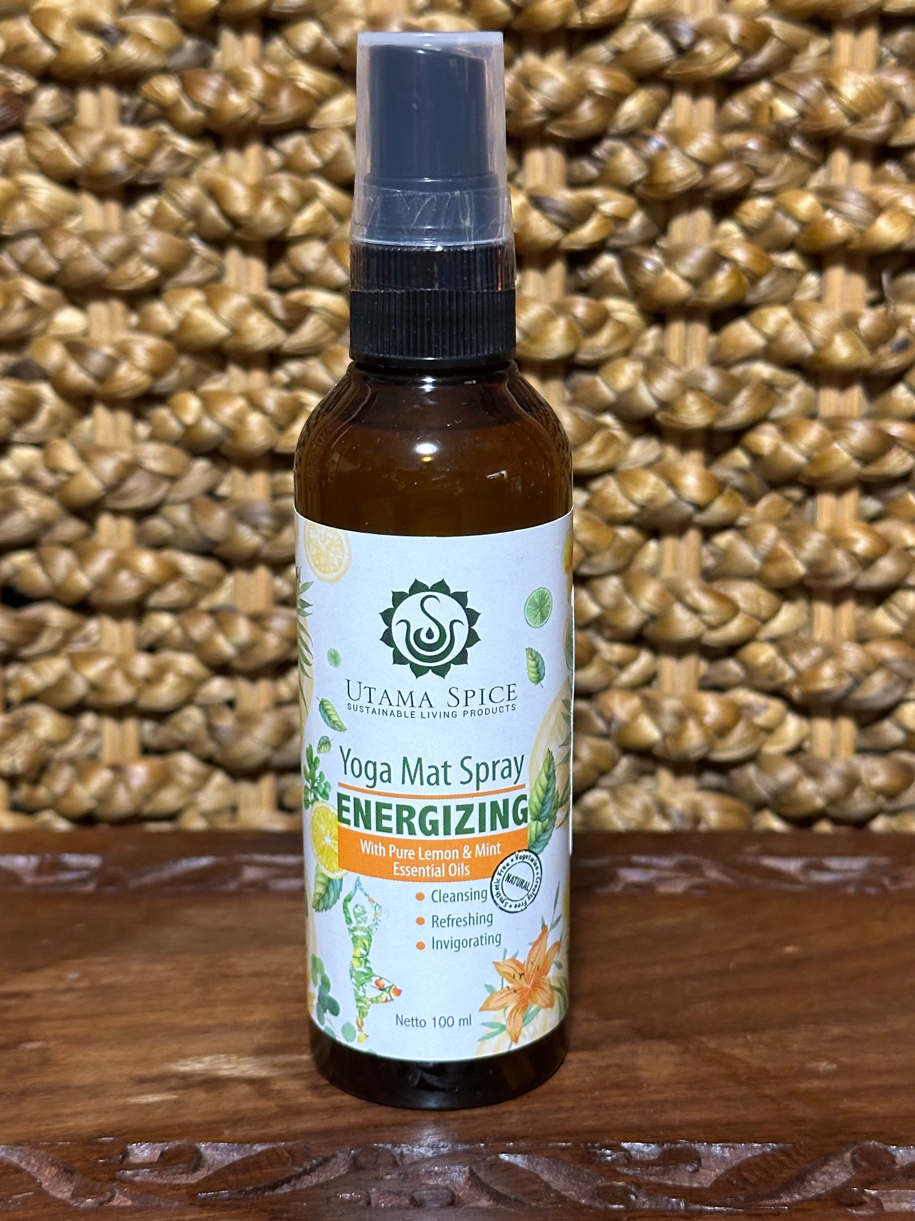 バリ島ウブドに工房があるオーガニックスキンケアショップ【ウタマスパイス】のヨガマットスプレー。