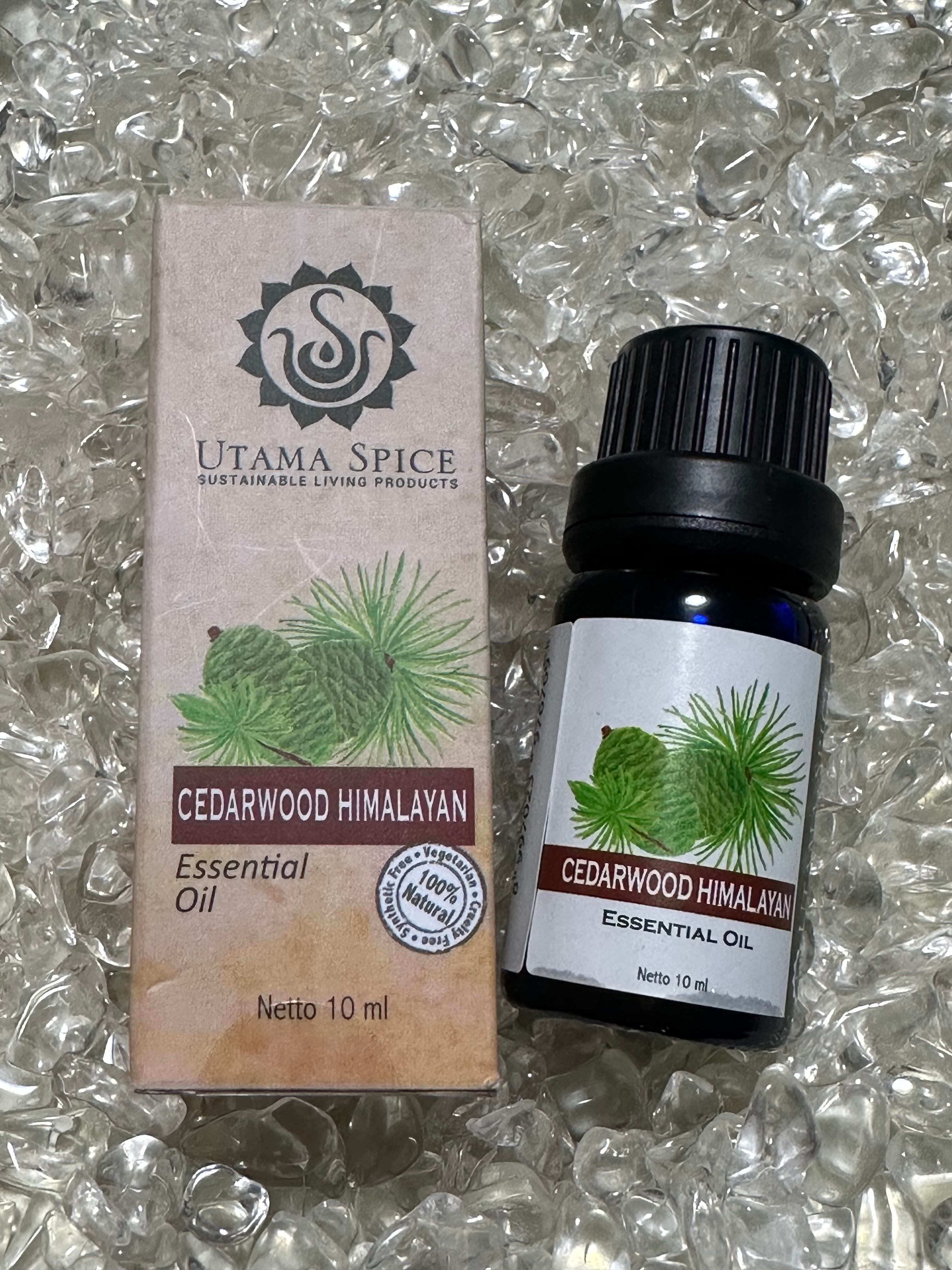 バリ島ウブドに工房があるオーガニックスキンケアショップ【ウタマスパイス】のエッセンシャルオイル(精油)、シダーウッド・ヒマラヤンです。