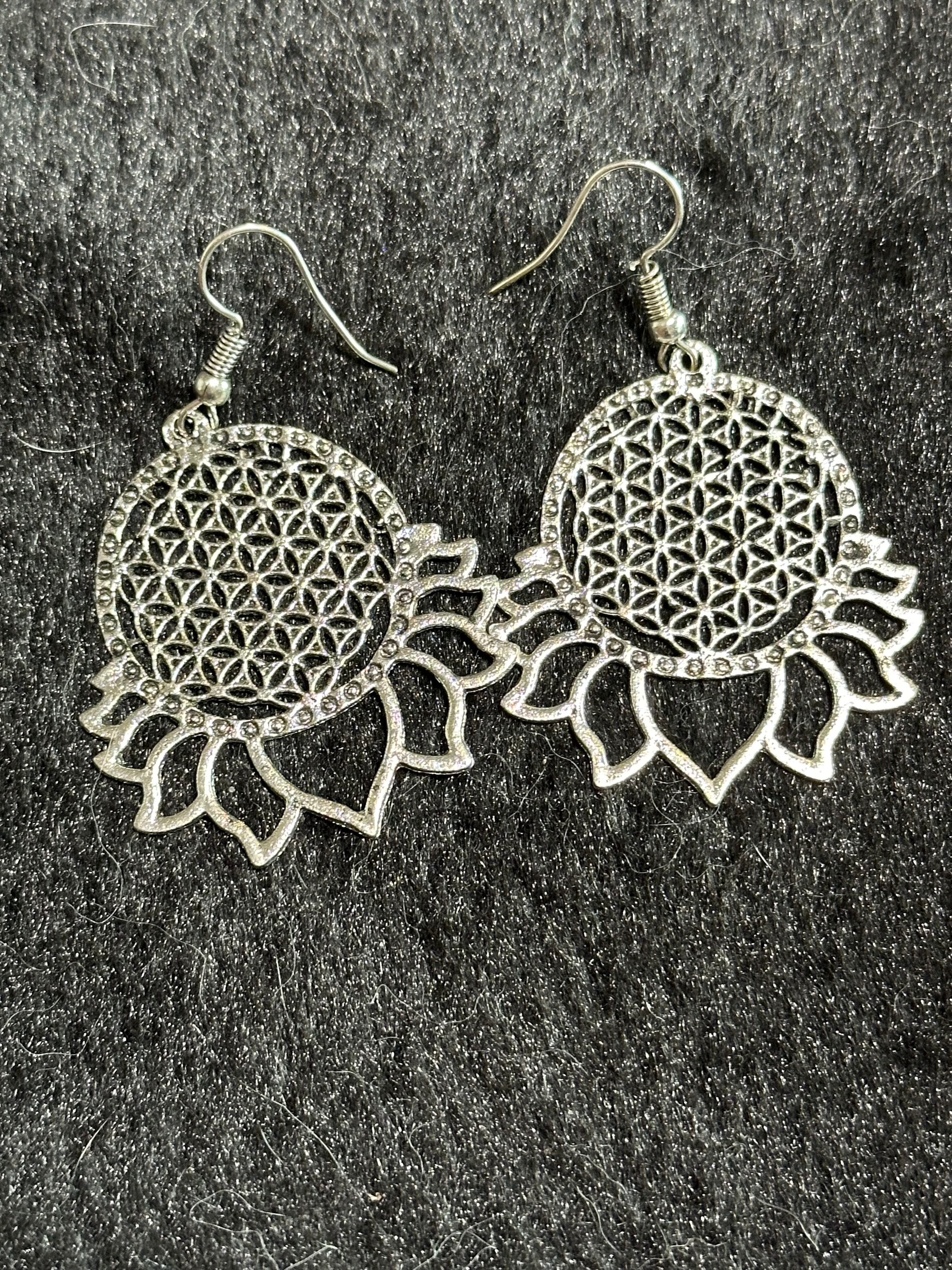 フラワーオブライフとロータスをモチーフにしたピアス。