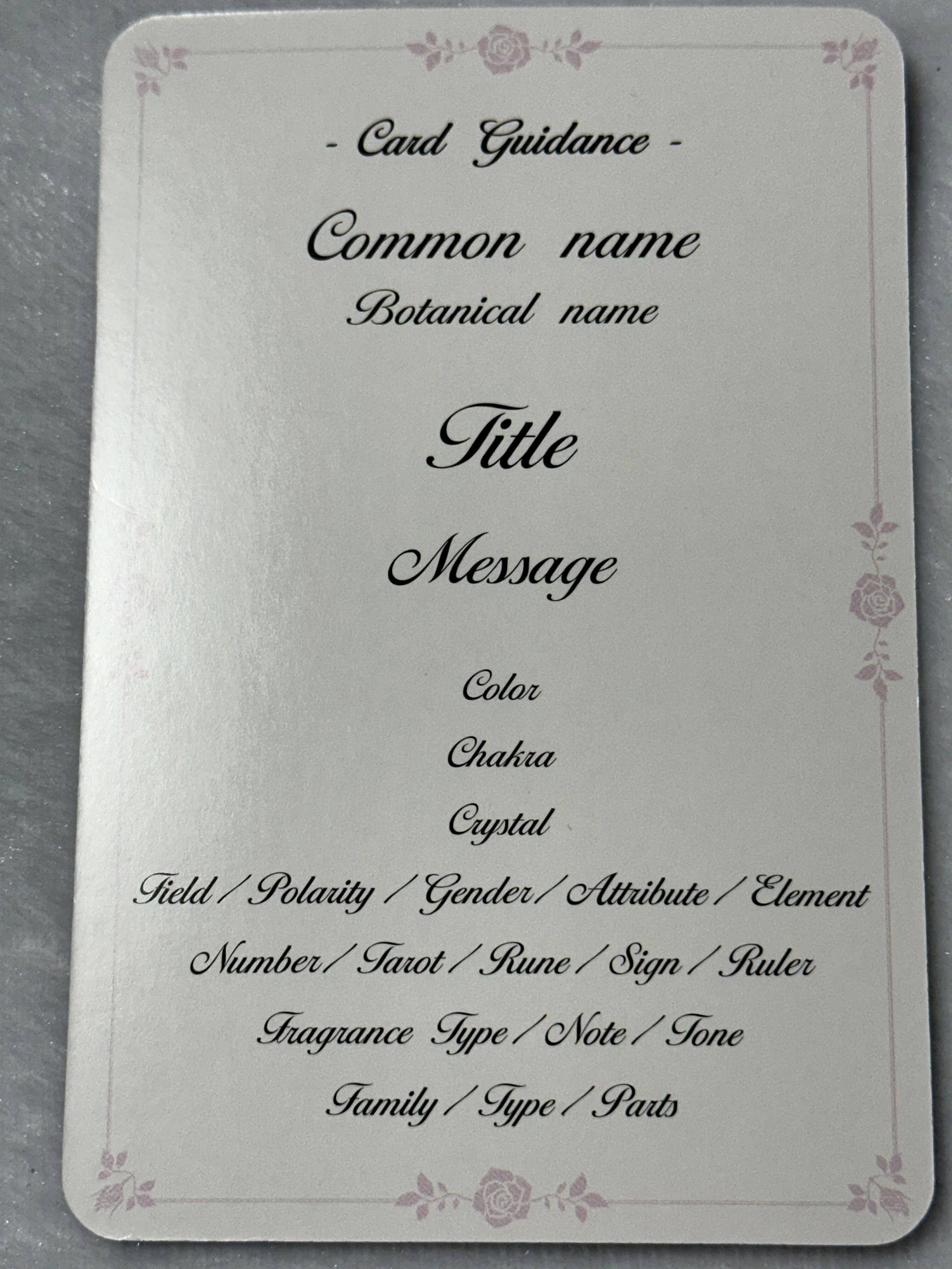 このMystic Aromatherapy Essence Cardから、それぞれのエッセンスが放つメッセージを感じ、皆様の日々の中で自らを導くオラクルカードとしてご活用ください。